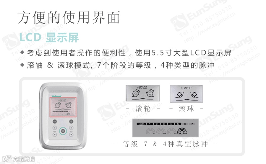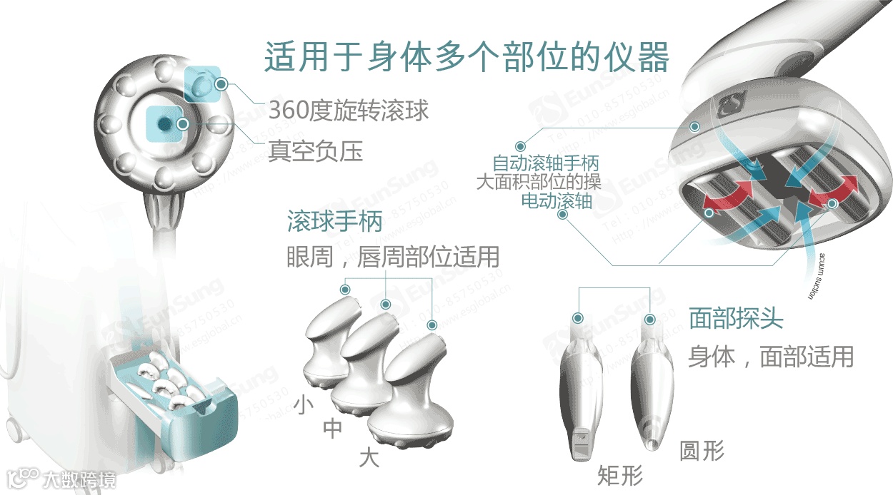 从磁头滚轮和真空泵中产生的持续性压力和吸力,具有刺激细胞,去除松弛的组织中残留 的组织液和废物,稳固有弹性的组织再构成的作用。