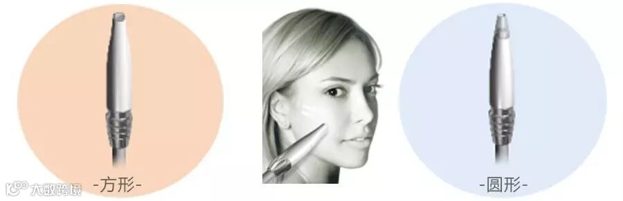 眼周,唇周,法令纹等局部部位施术时,使用方形头手柄进行有效的提升,收缩,皱纹管理清除鼻翼皮脂时,使用圆形头手柄进行操作