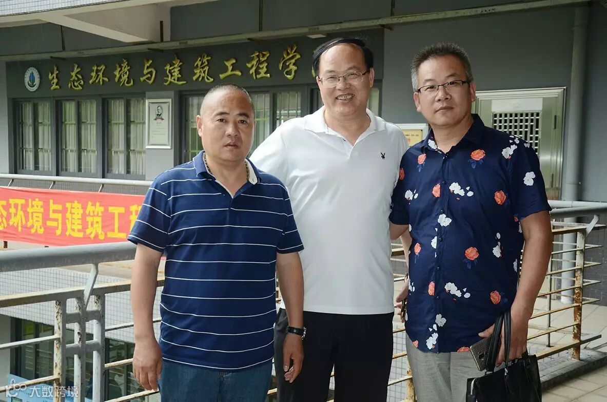 符建敏总经理(左)与张涛会长(右)、东莞理工学院党委(院长)办副主任、发展与联络办公室主任崔学海(中)在学院内合影留念