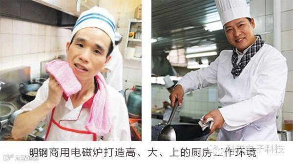 在生活工作中,厨师给我们的印象就是在厨房环境中身穿厨房工作服的一员,而厨房一直以为给我们的概念就是热、杂吵、危险,这让厨师这个行业处于了大多数人不愿意选择的行业,而如今明钢商用电磁炉给厨房环境平反了,明钢商用电磁炉让您立即变身厨房高富帅。