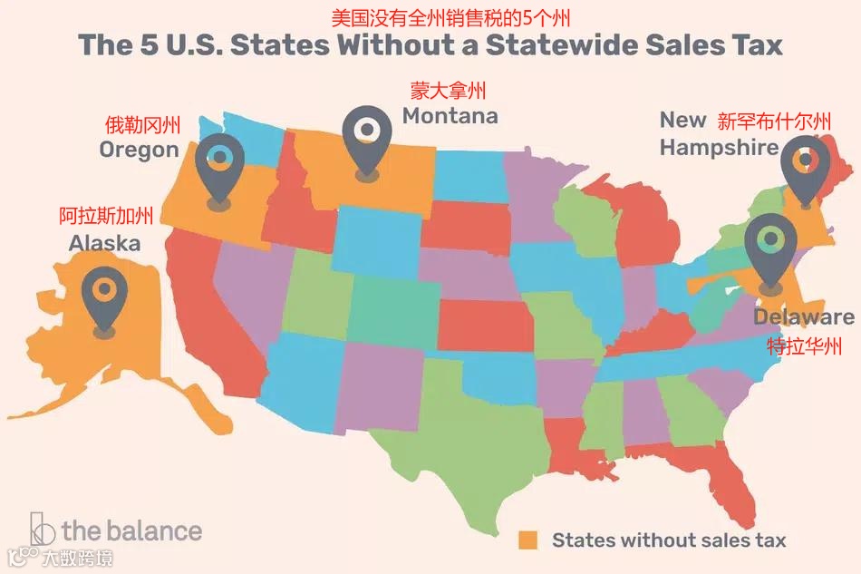 通常所说的免税州指的是五个免消费税的州,分别是阿拉斯加州、特拉华州、新罕布夏州、蒙大拿州和俄勒冈州。