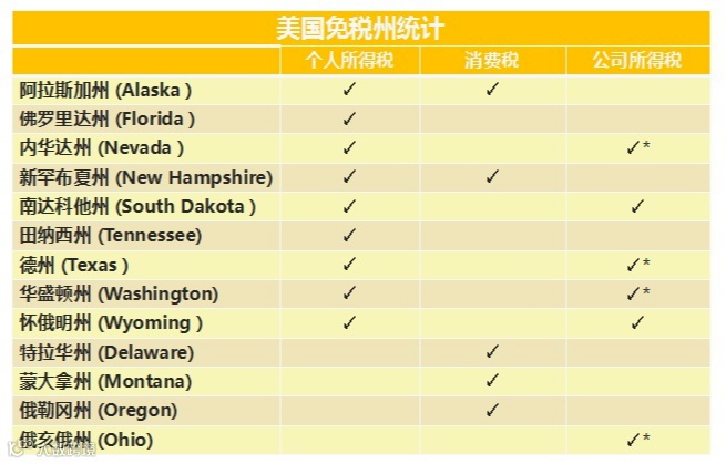 例如田纳西州和华盛顿州免所得税,但消费税高:特拉华州免消费税,但所得税不低。