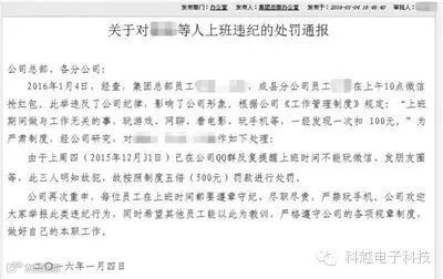 这位员工还说,公司之前在QQ群里发过一个通知,其中一条就是“从2016年1月1日开始,上班期间严禁玩手机、聊微信、发朋友圈。公司总部办公室随时接收匿名举报(以截图为证)。”