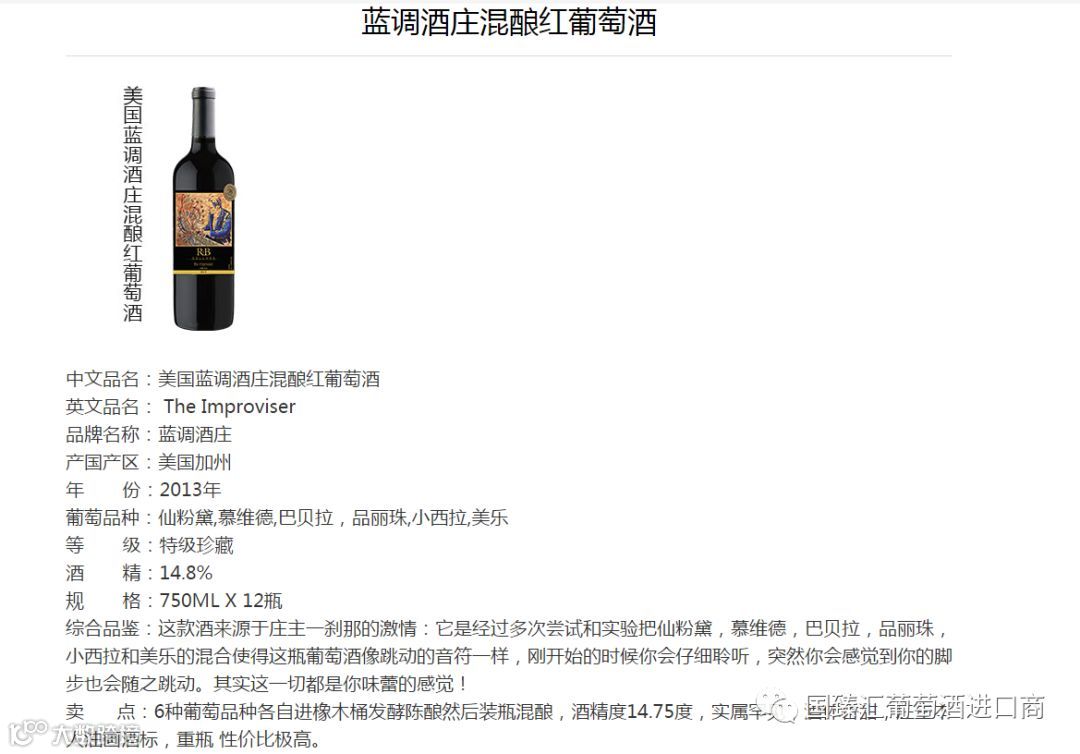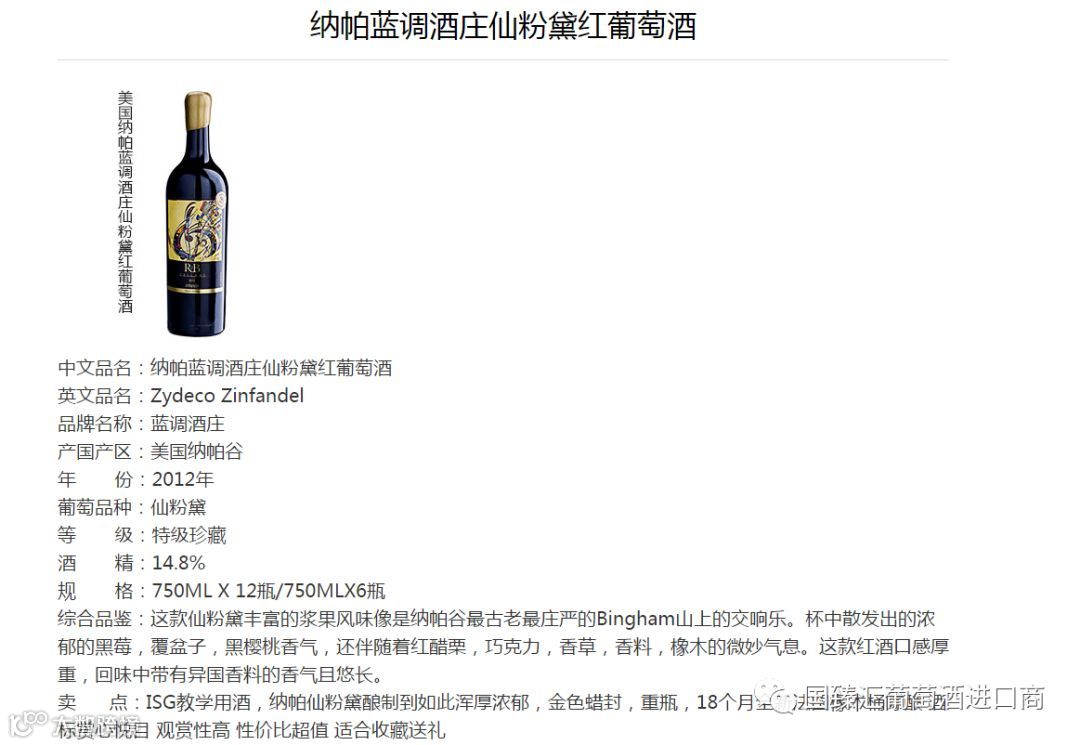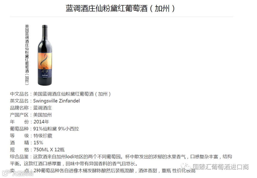 这款酒来自加州lodi地区的两个不同葡萄园。杯中散发出的浓郁的水果香气,口感复杂丰富,结构平衡。这款红酒口感厚重,回味中带有异国 香料的香气且悠长。