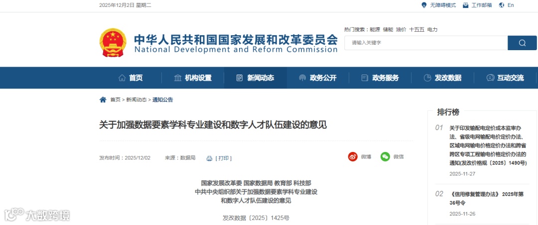 国 家 数 据 局