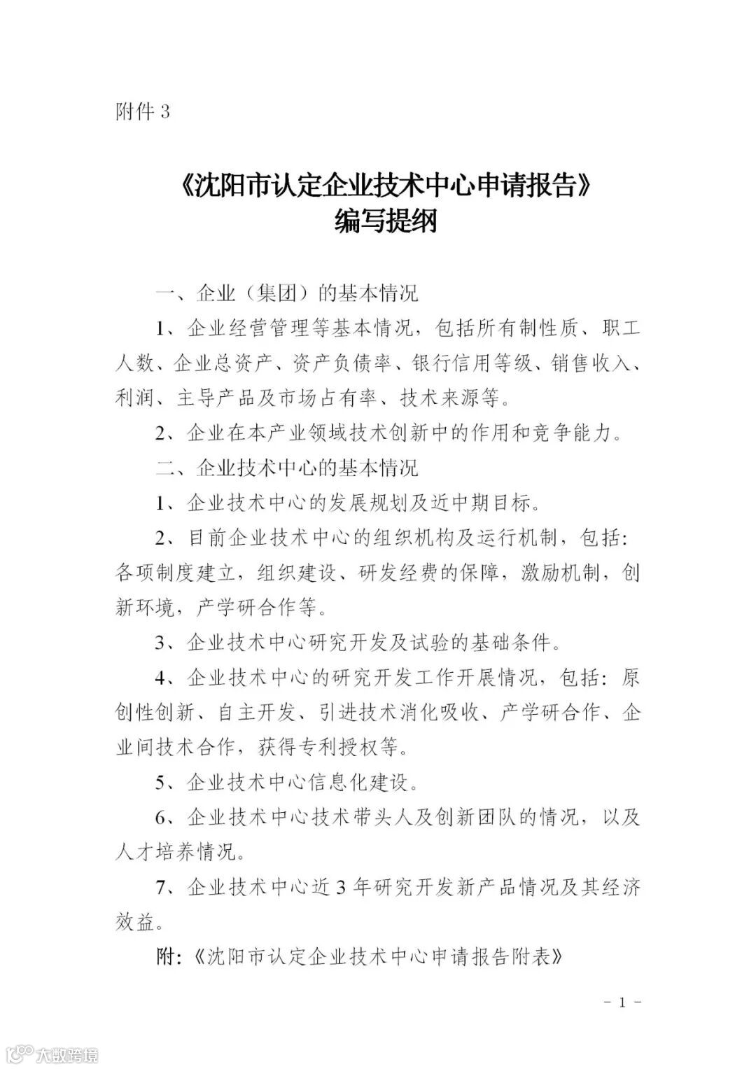 3.沈阳市认定企业技术中心申请报告编写提纲