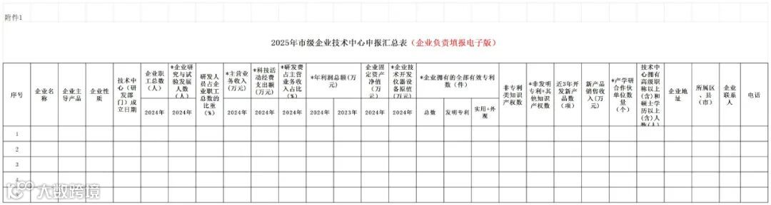 附件1:(企业负责填报)2025年市级企业技术中心申报汇总表.xlsx