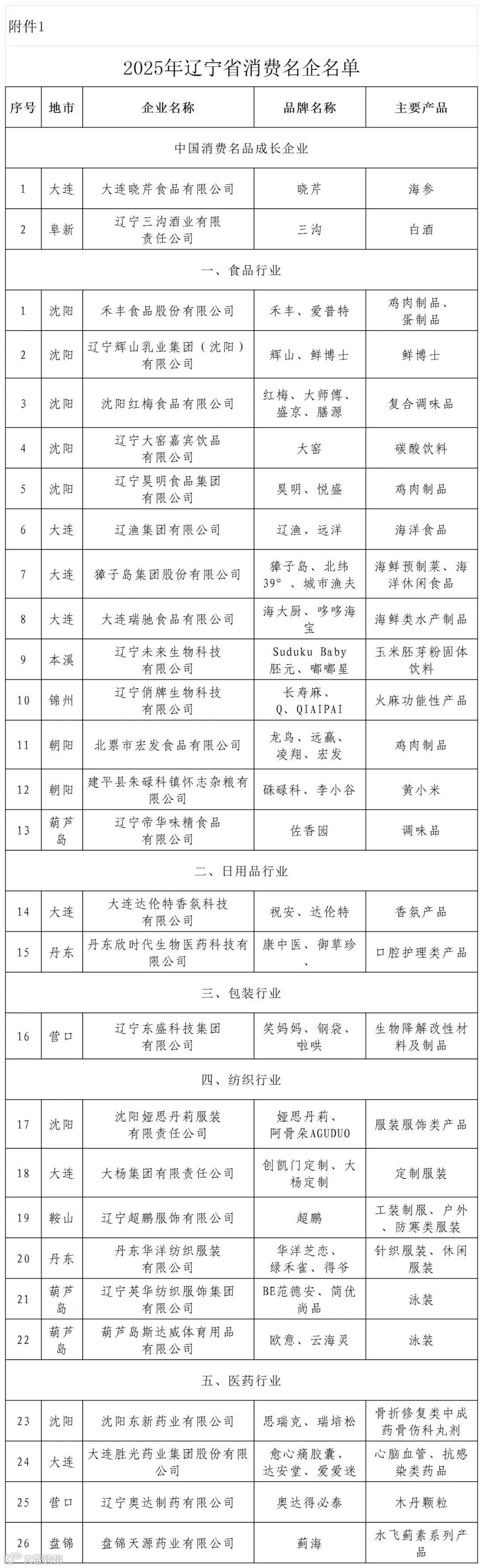 附件:拟发布的《2025年辽宁省消费名企名品目录》