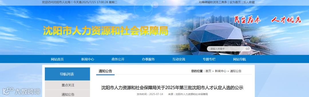 按照《沈阳市人力资源和社会保障局 沈阳市工业和信息化局 沈阳市科学技术局关于印发<沈阳市人才认定办法>的通知》(沈人社发〔2022〕27号),由市人力资源社会保障局组织开展沈阳市人才认定工作。经申报受理、审核认定等程序,拟确定柴源等668人为沈阳市2025年第三批人才认定人选(B类16人、C类95人、D类557人)。公示期为2025年7月14日至2025年7月18日,公示人员名单附后。
