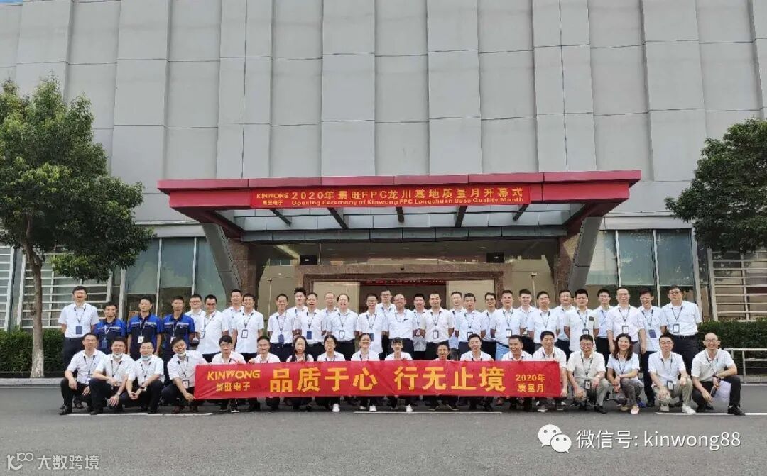 9月4日,迎着第一缕日光,在巍立的二期厂房旁,FPC事业群邓利总裁、龙川FPC事业部总经理周正悟、龙川FPC事业部副总经理凡中武带领着龙川FPC事业部全员1800多名员工,召开2020年质量月活动的开幕式兼主题宣讲会。