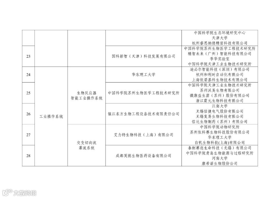 附件:高性能生物反应器创新任务入围揭榜单位名单