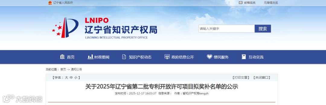 根据《关于开展专利开放许可工作的通知》《关于组织2025年辽宁省实施专利开放许可项目申报工作的通知》要求,经评审,确定7个项目申报单位的57件开放许可专利符合奖补条件(详见附件),现予以公示。公示期自2025年12月17日至2025年12月23日止。