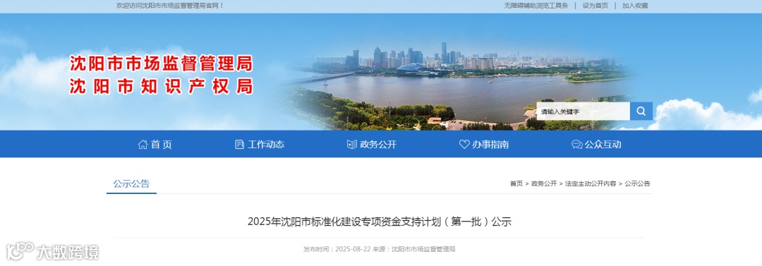 根据《沈阳市标准化建设专项资金管理办法》,市市场监管局组织开展了2025年沈阳市标准化建设专项资金支持项目(第一批)征集、评审等工作,形成了2025年沈阳市标准化建设专项资金支持计划(第一批),现予以公示。
