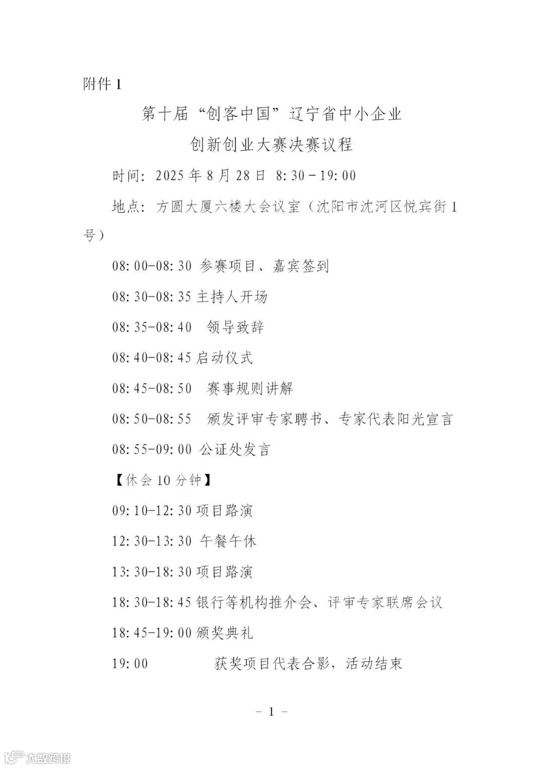 附件:1.第十届“创客中国”辽宁省中小企业创新创业大赛决赛议程