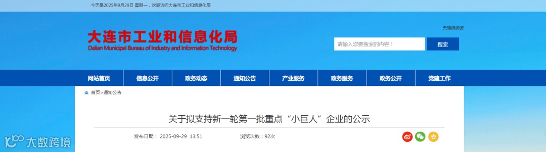 快讯(大连)|关于拟支持新一轮第一批重点“小巨人”企业的公示