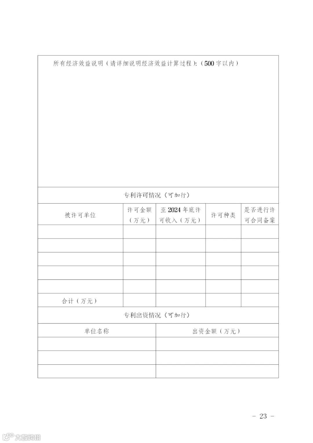 2.附件。附件首页需设置目录页,项目申报辅助证明材料均可放入附件中,包括但不限于专利授权文本(登录国家知识产权局网站下载)、项目应用证明(购销合同、许可备案、发票等)、专利权人同意申报声明、产品图片、项目应用照片、获奖证书等。