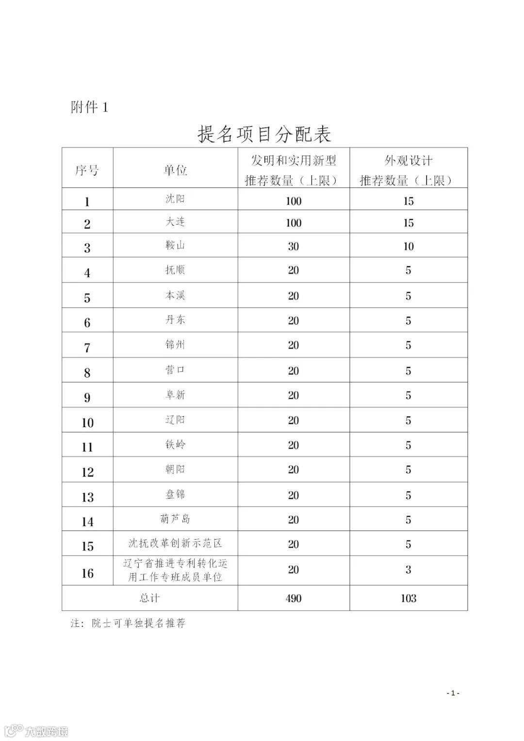 具体推荐名额分配见提名项目分配表(附件1),院士可单独提名推荐。