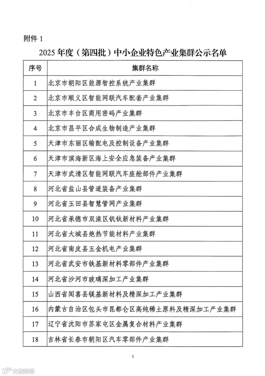 附件:1.2025年度(第四批)中小企业特色产业集群公示名单