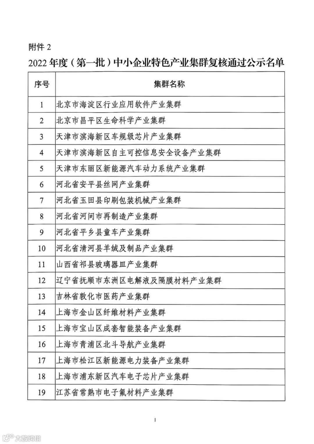 2.2022年度(第一批)中小企业特色产业集群复核通过公示名单