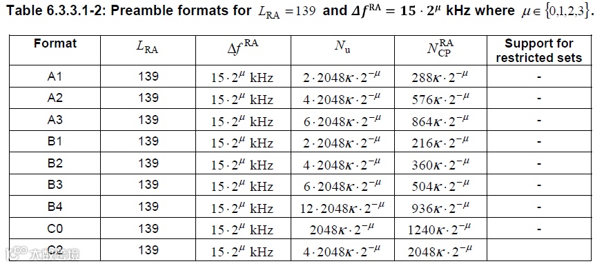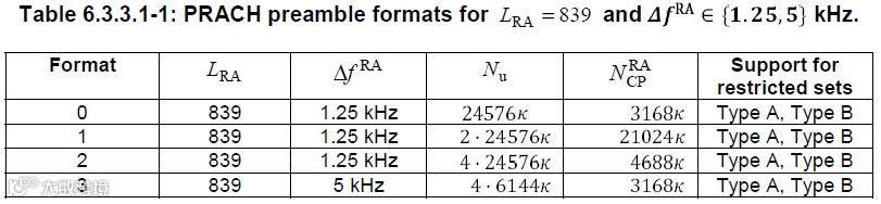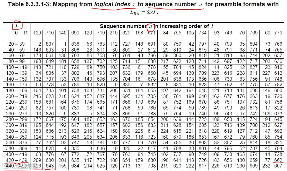 sequence number u 是根据logical root sequence index i 查下表得到的, logical root sequence index i 是根据参数prach-RootSequenceIndex l839 :439得到的。