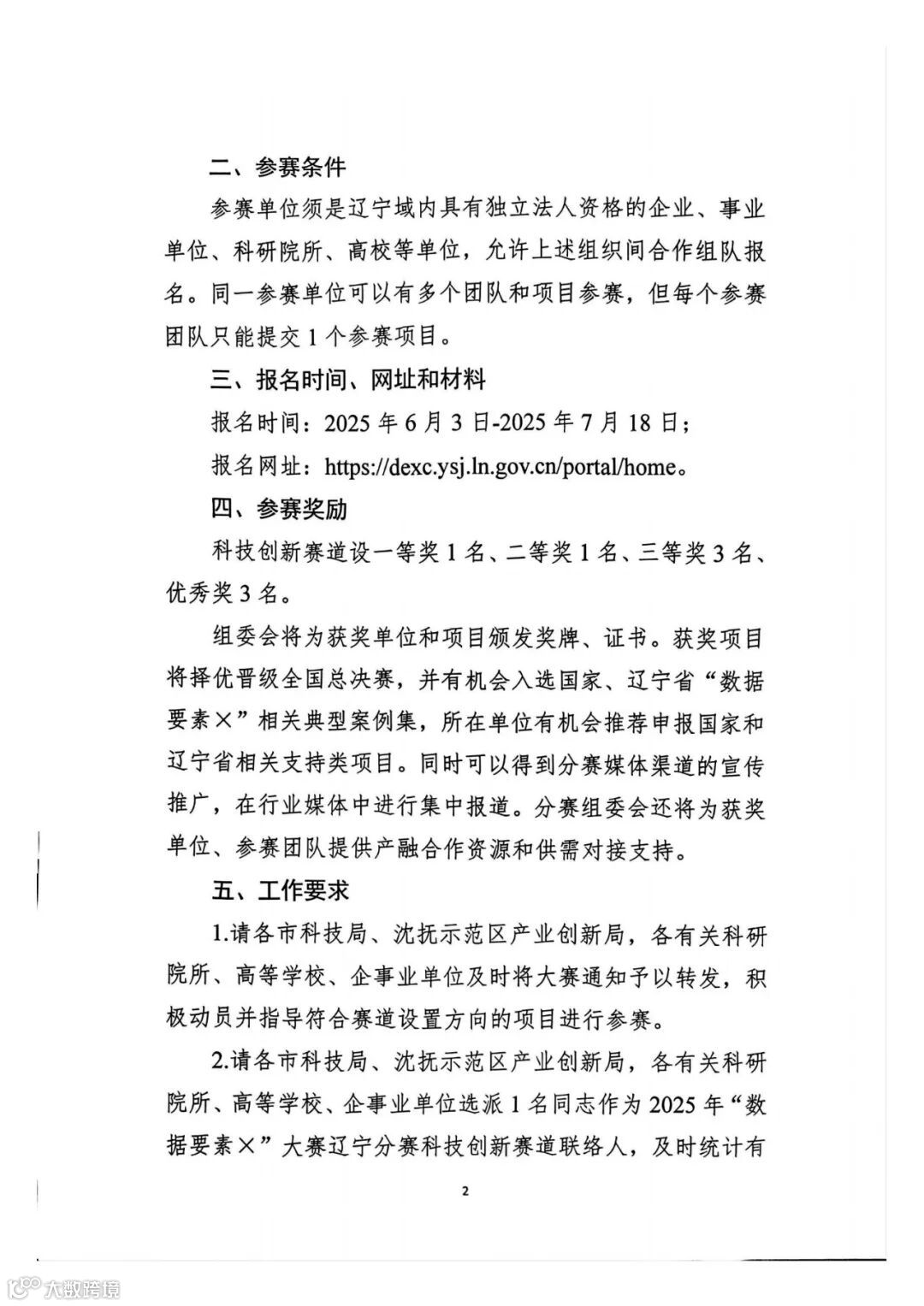 附件:关于做好2025年“数据要素X”大赛辽宁分赛科技创新赛道办赛工作的通知