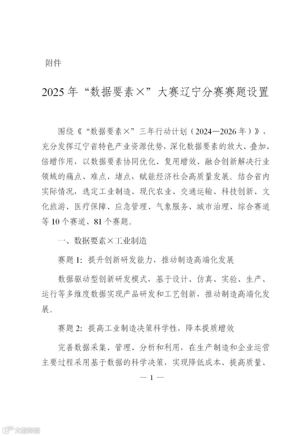 围绕《“数据要素×”三年行动计划(2024—2026年)》部署的重点行业领域,结合辽宁实际情况,分赛选定以下10个赛道: