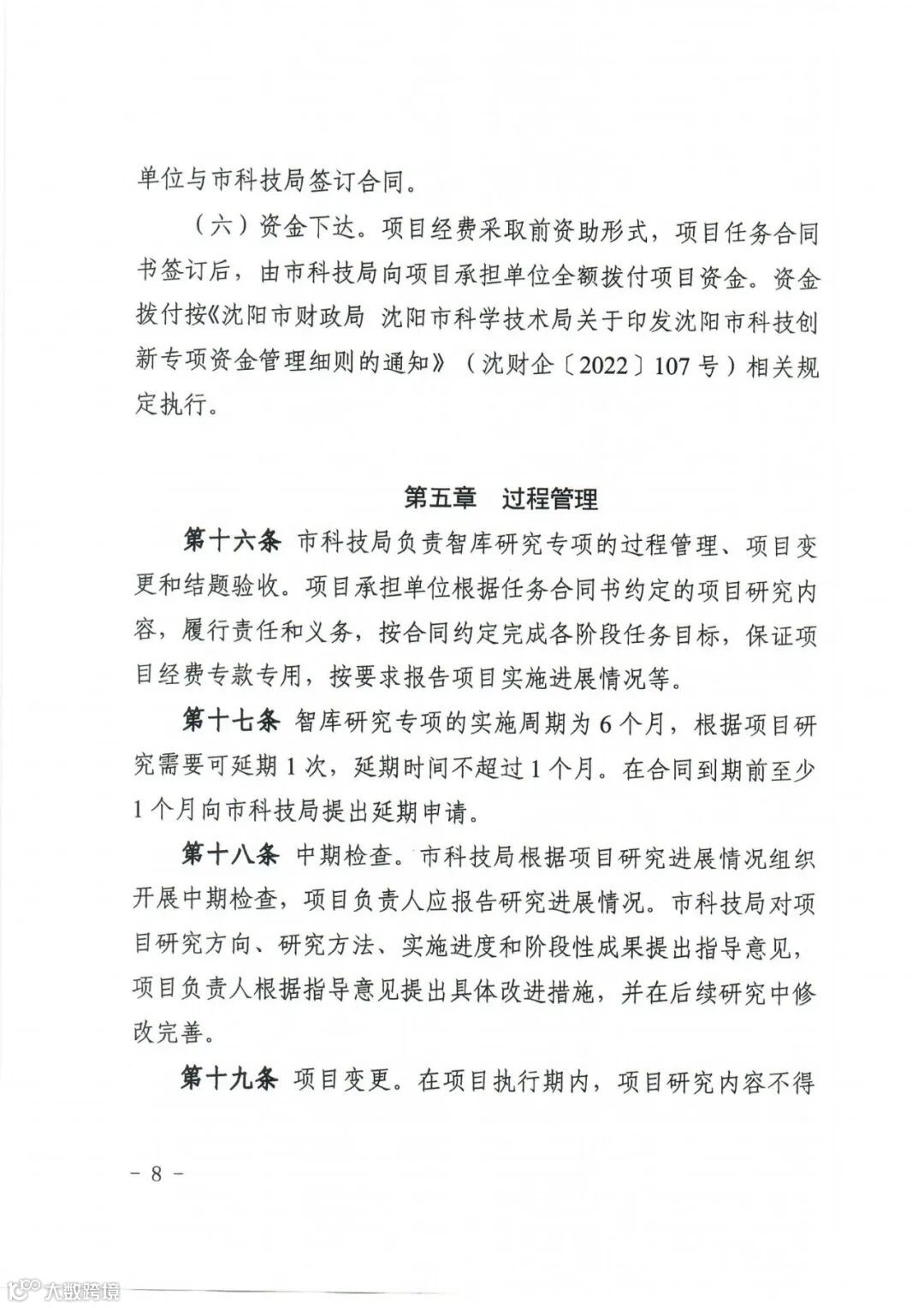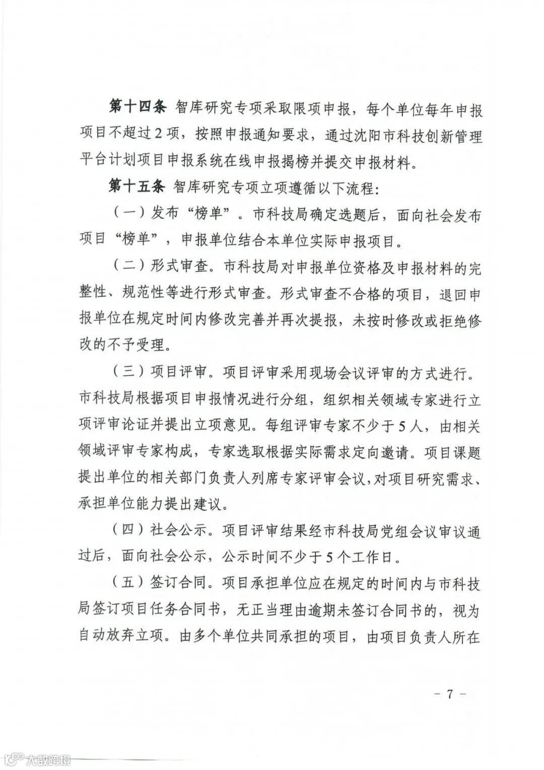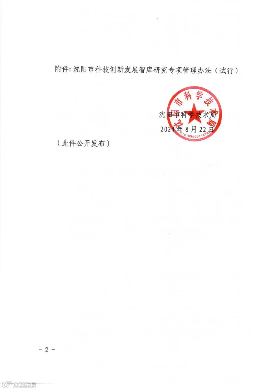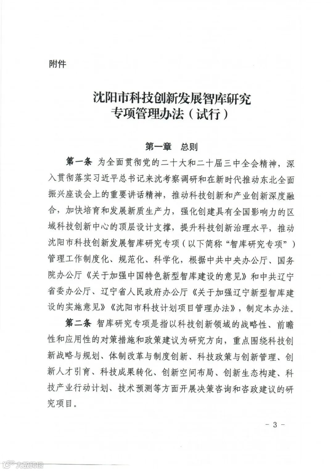 根据《沈阳市科技创新发展智库研究专项管理办法(试行)》,现将沈阳市科技创新发展智库研究专项项目申报工作通知如下: