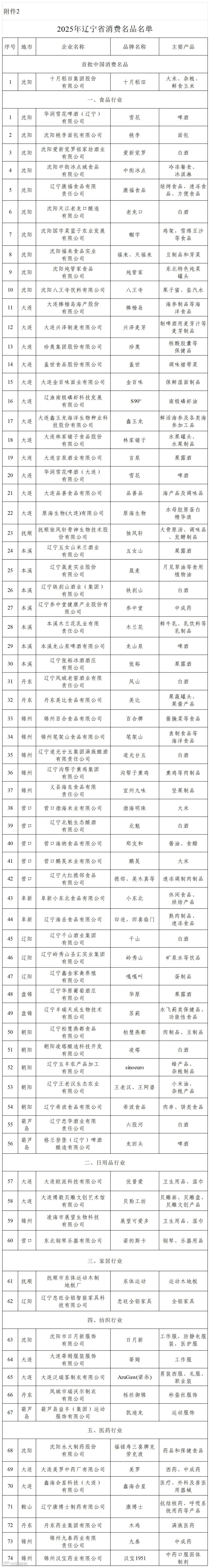 3.2025年辽宁省消费名品区域品牌名单