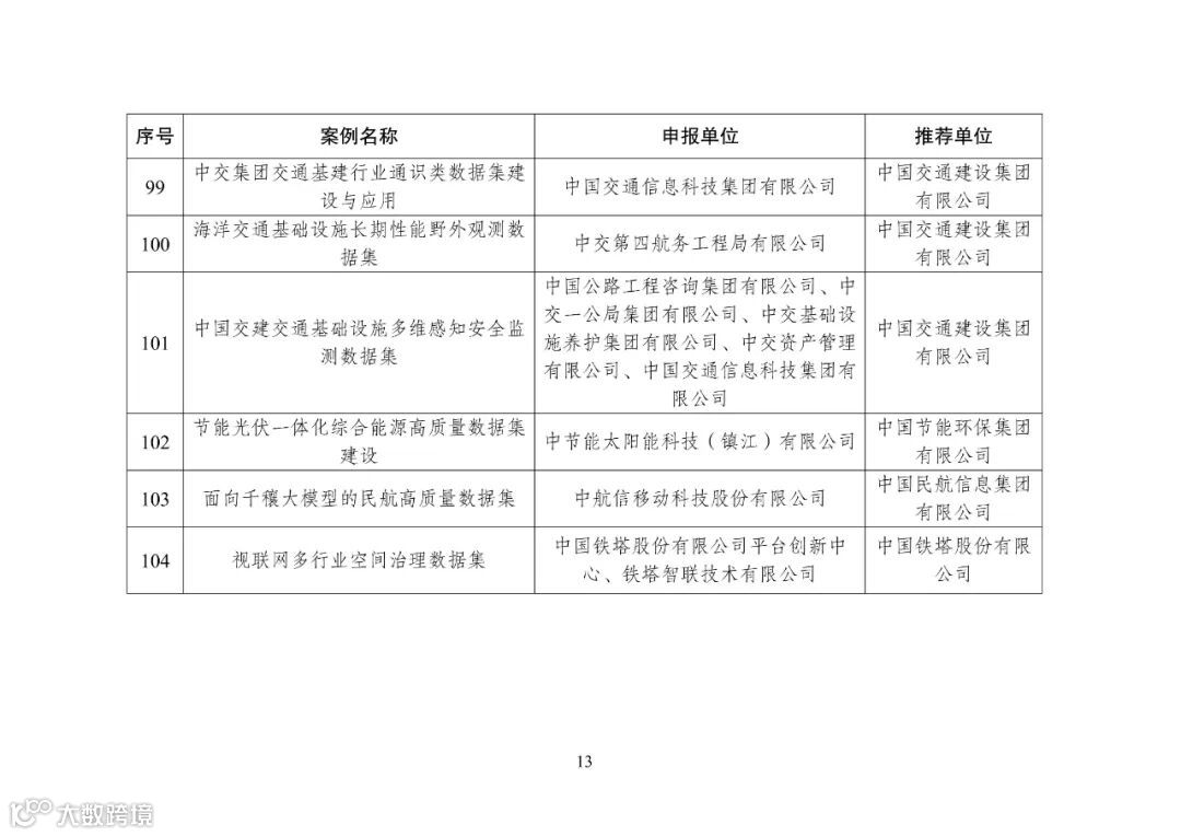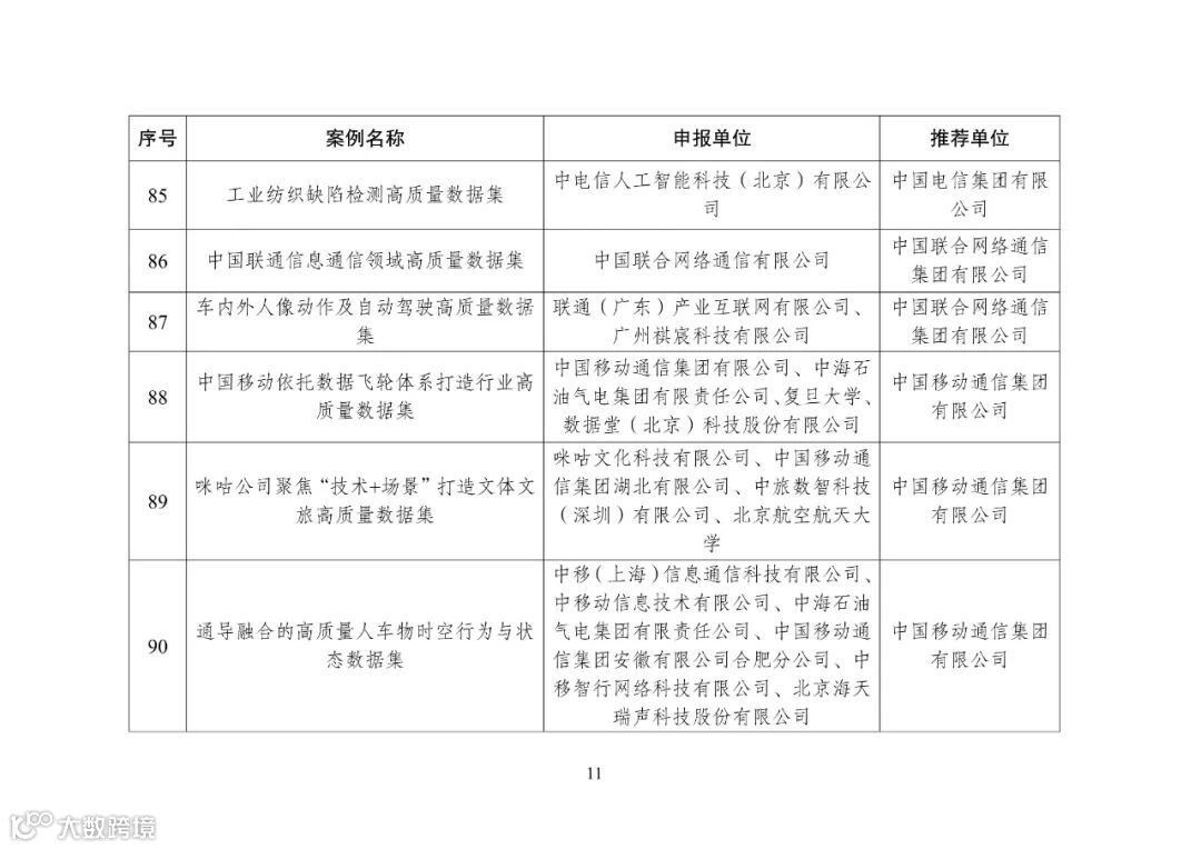 为落实“人工智能+”行动有关部署,按照《国家数据局综合司关于征集高质量数据集典型案例的通知》(国数综科基〔2025〕70号)工作安排,经申报推荐、专家评审,确定高质量数据集典型案例名单,现予公布。