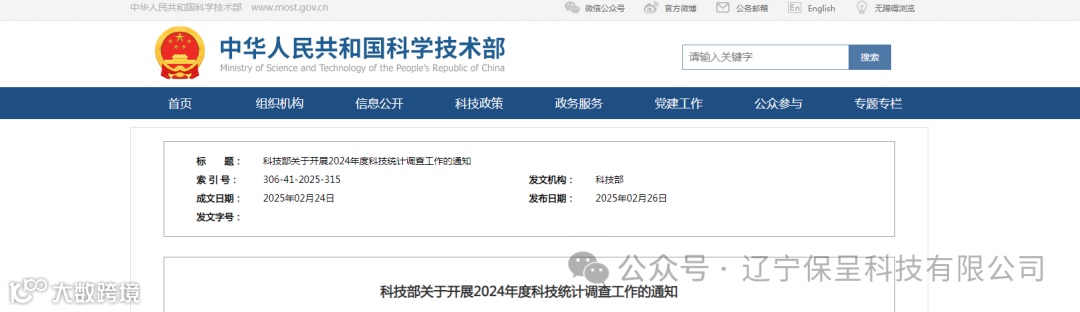 保呈快讯内容:关于《科技部关于开展2024年度科技统计调查工作的通知》-内容分享