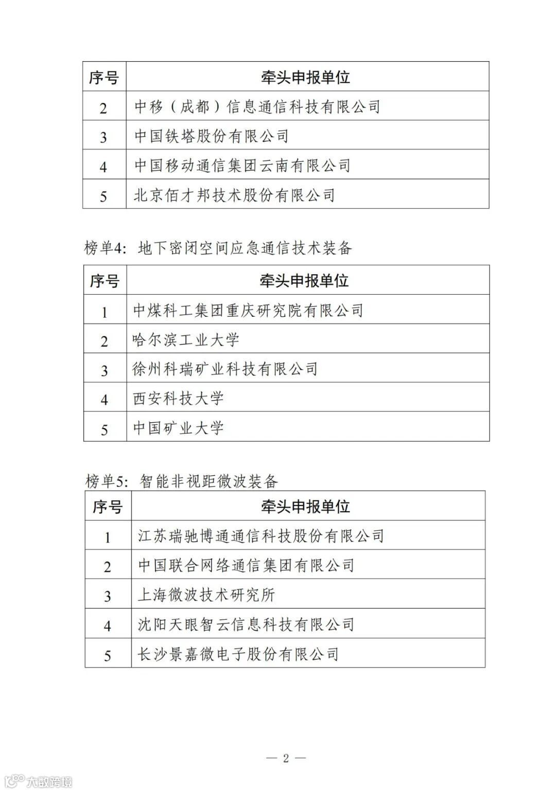 按照《工业和信息化部办公厅 应急管理部办公厅关于组织开展2024年应急通信装备创新揭榜挂帅工作的通知》要求,工业和信息化部会同应急管理部面向社会开展应急通信产业创新揭榜挂帅工作。经公开申报、专家评审、会议评审等程序,10项任务榜单共遴选出46个单位入围,现予以公布。