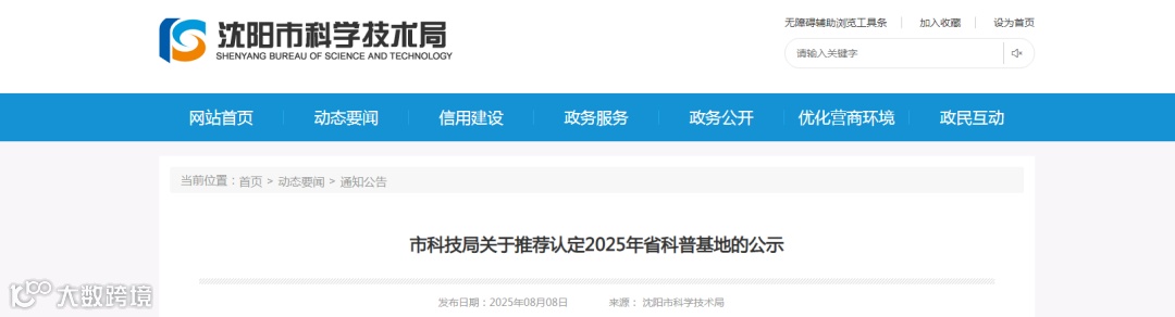 根据省科技厅、省科协印发的《关于开展2025年辽宁省科学技术普及基地申报工作的通知》(辽科办发〔2025〕47号)有关要求,市科技局会同市科协组织开展了2025年辽宁省科普基地认定推荐工作,经组织申报、形式审查、专家评审,现将拟推荐认定的2025年省科普基地予以公示。