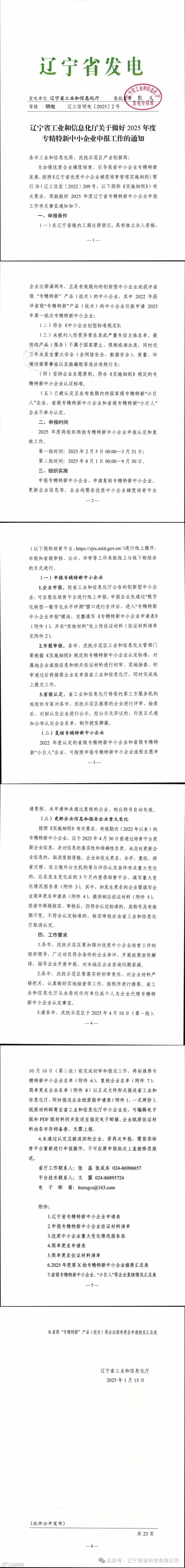 保呈快讯内容:关于《辽宁省工业和信息化厅关于做好2025年度专精特新中小企业申报工作的通知》-内容分享