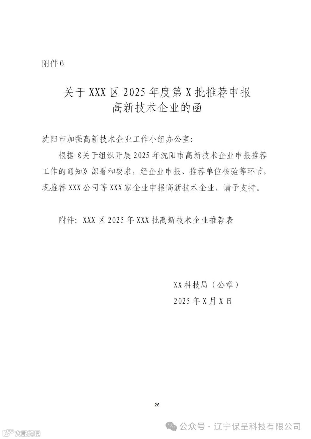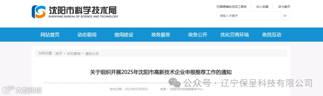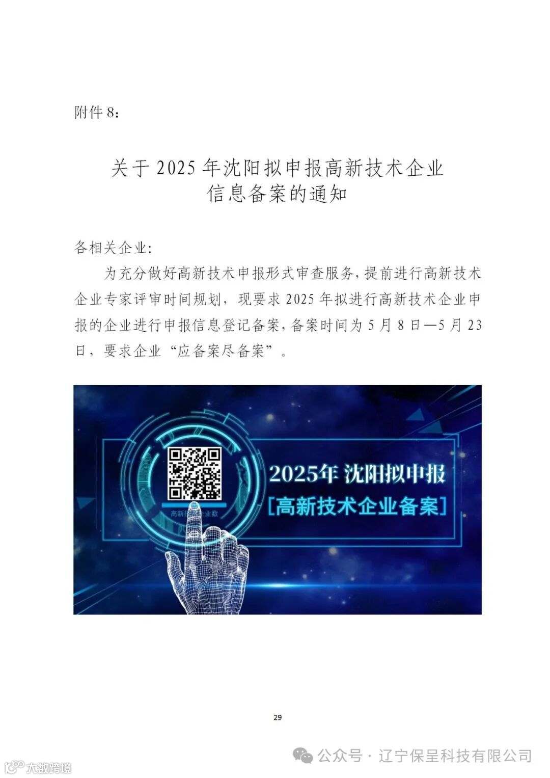保呈快讯内容:关于《关于组织开展2025年沈阳市高新技术企业申报推荐工作的通知》-内容分享