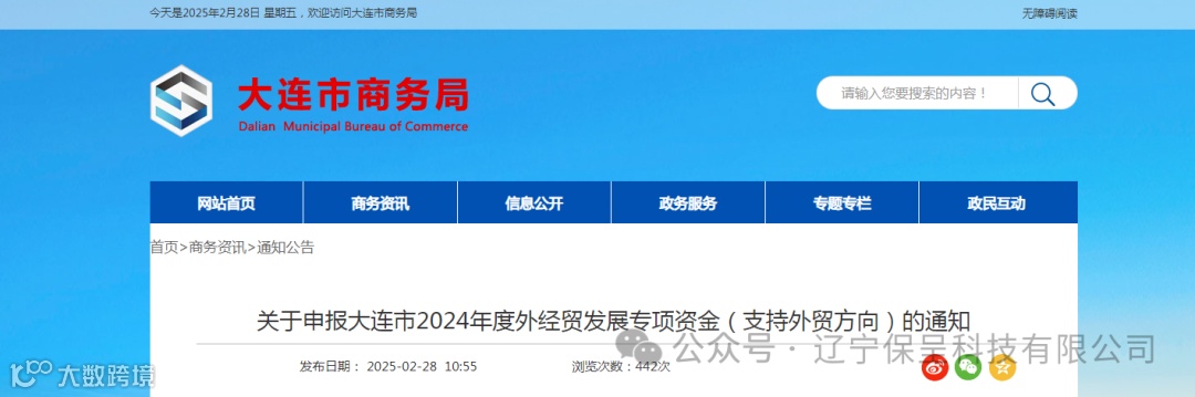 保呈快讯内容:关于《关于申报大连市2024年度外经贸发展专项资金(支持外贸方向)的通知》-内容分享