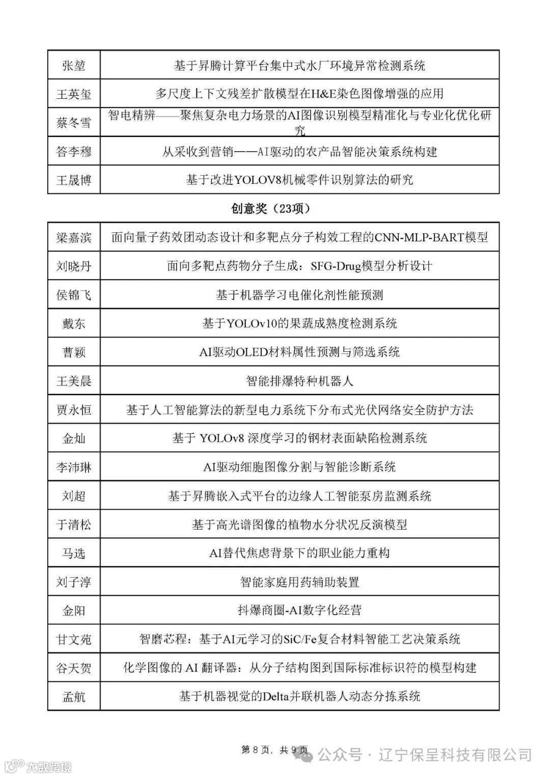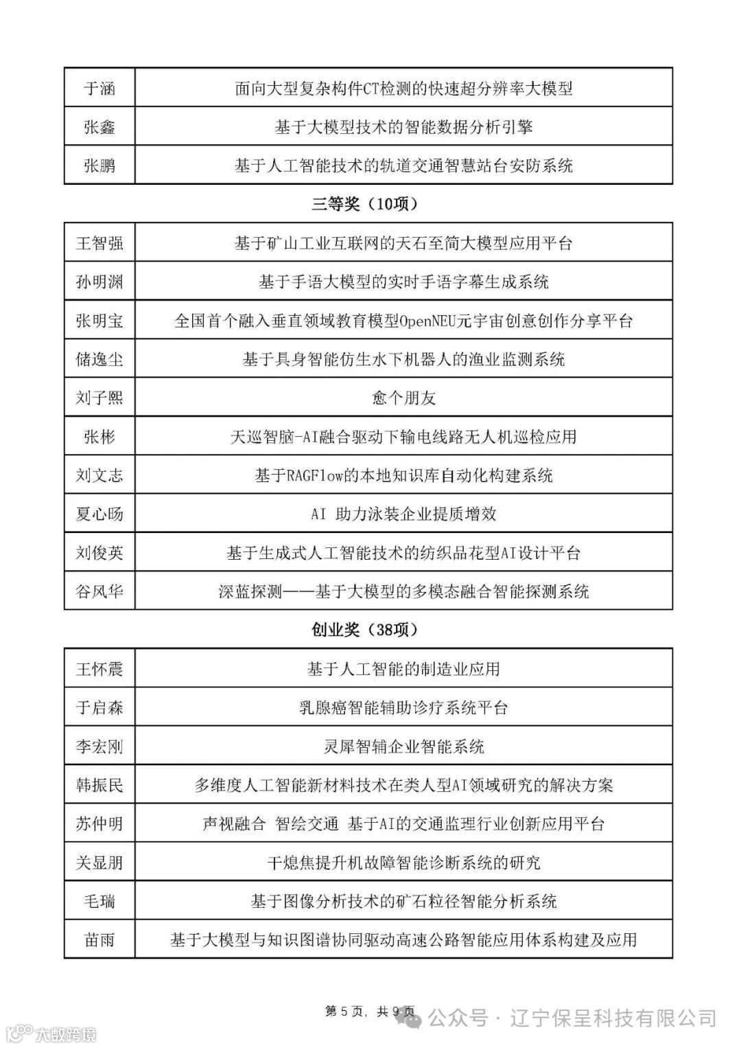 保呈快讯内容:关于《关于2025年辽宁省青年AI创新大赛获奖名单的公告》-内容分享