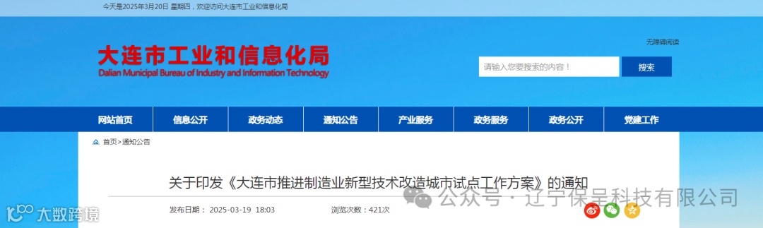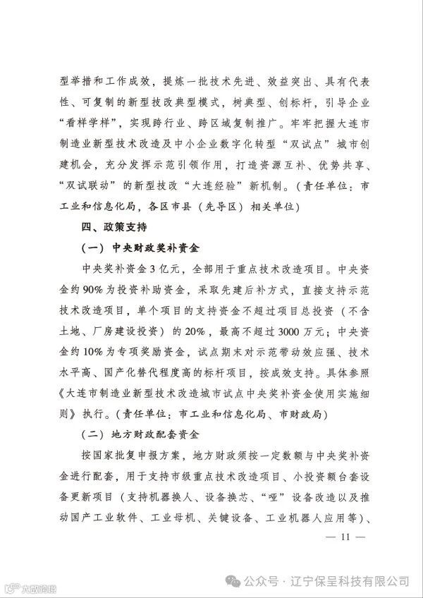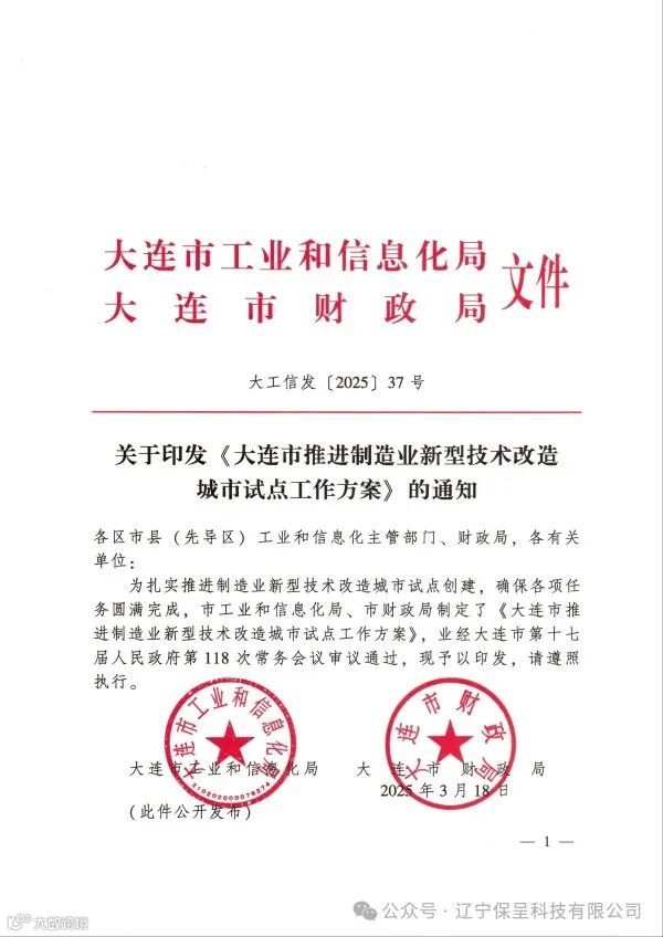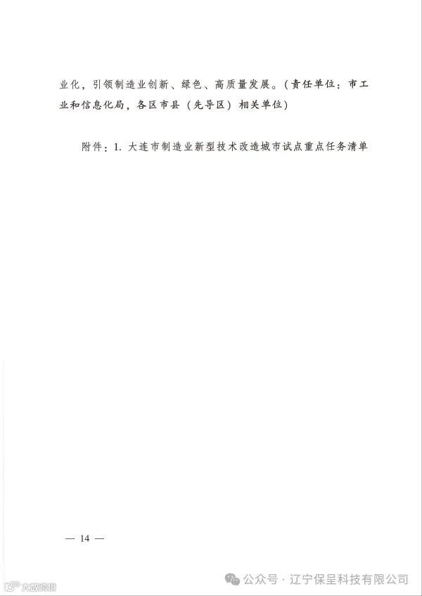 保呈快讯内容:关于《关于印发《大连市推进制造业新型技术改造城市试点工作方案》的通知》-内容分享
