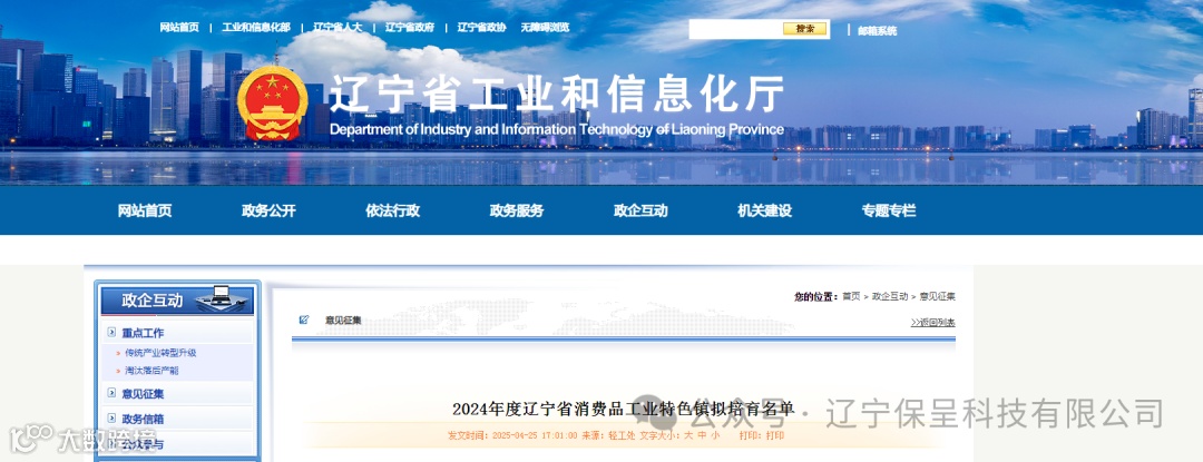 保呈快讯内容:关于《2024年度辽宁省消费品工业特色镇拟培育名单》-内容分享