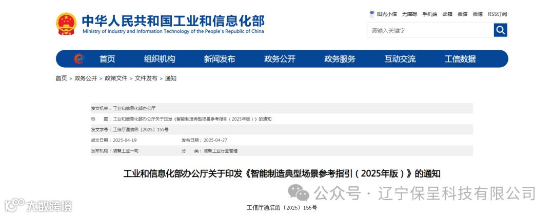 保呈快讯内容:关于《工业和信息化部办公厅关于印发《智能制造典型场景参考指引(2025年版)》的通知》-内容分享