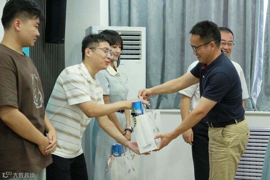 会后,公司领导为新员工们颁发了人事部精心准备的入职礼包,包含4本书籍和公司IP形象“龙小慧”文创产品。