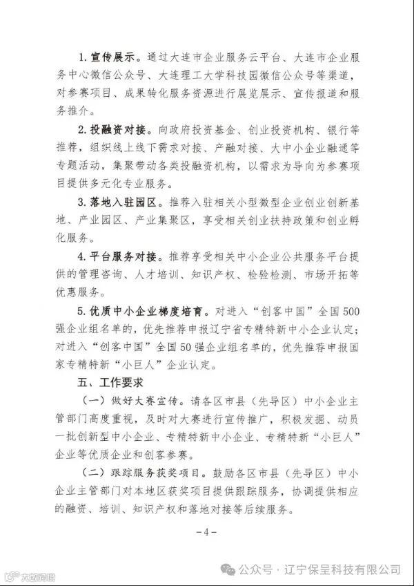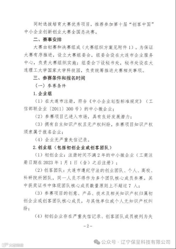 保呈快讯内容:关于《关于举办第十届“创客中国”大连市中小企业创新创业大赛的通知》-内容分享