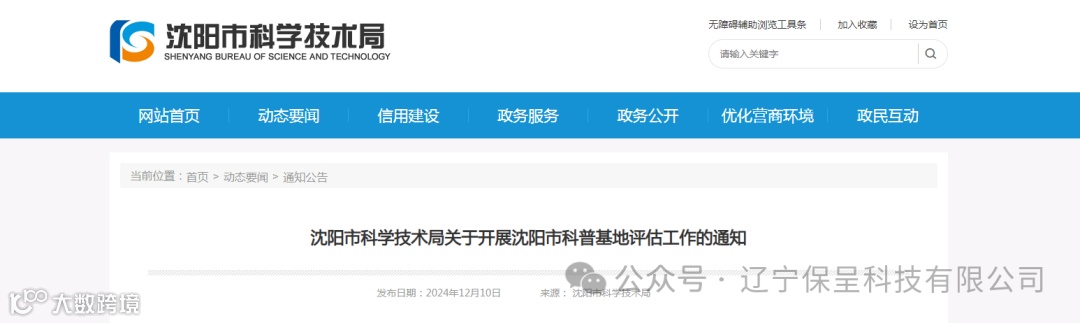 保呈快讯内容:关于《沈阳市科学技术局关于开展沈阳市科普基地评估工作的通知》-内容分享