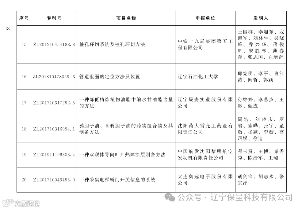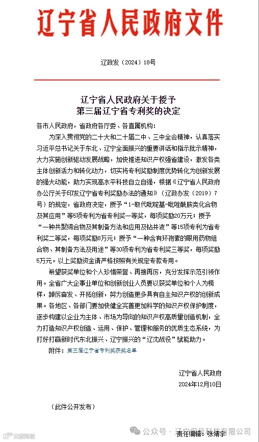 保呈快讯内容:关于《辽宁省人民政府关于授予第三届辽宁省专利奖的决定》-内容分享