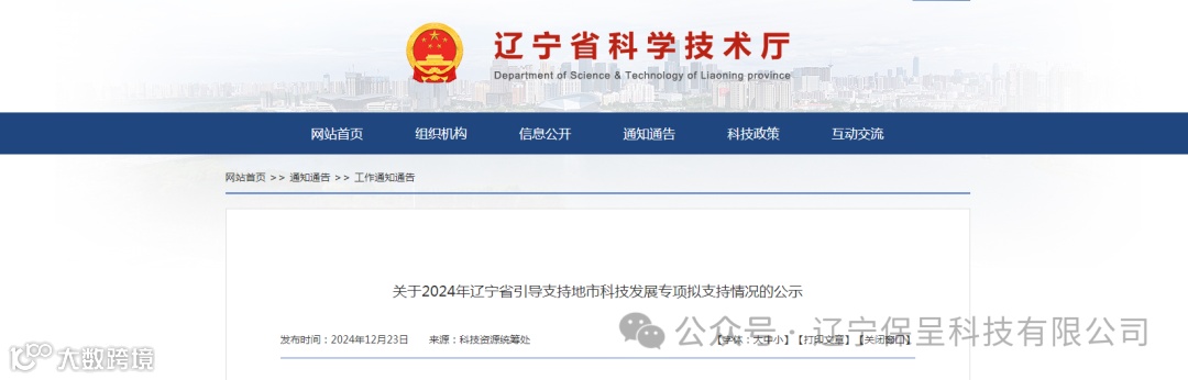 保呈快讯内容:关于《关于2024年辽宁省引导支持地市科技发展专项拟支持情况的公示》-内容分享