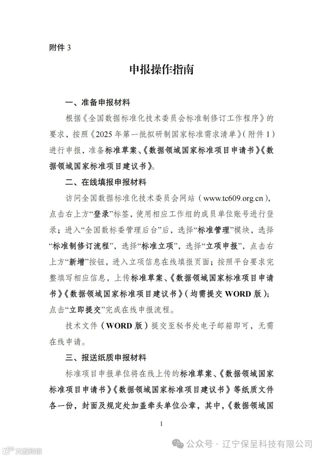 保呈快讯内容:关于《关于发布2025年第一批数据领域国家标准需求的通知》-内容分享