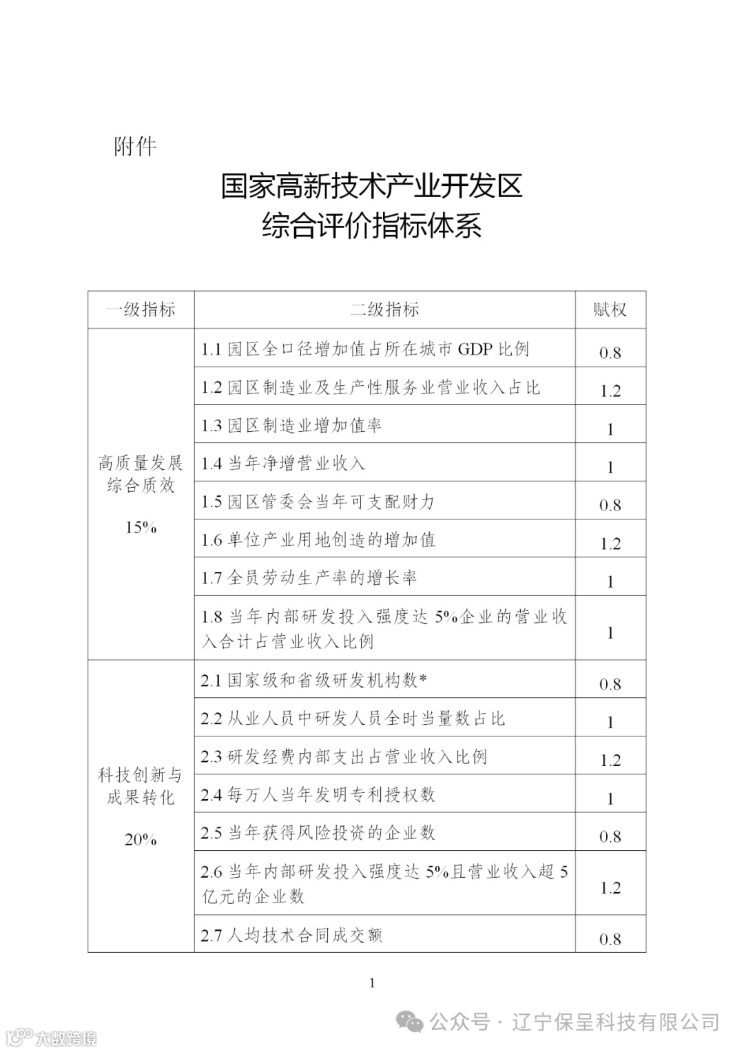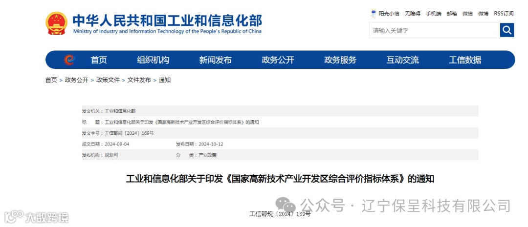 保呈快讯内容:关于《工业和信息化部关于印发《国家高新技术产业开发区综合评价指标体系》的通知》-内容分享