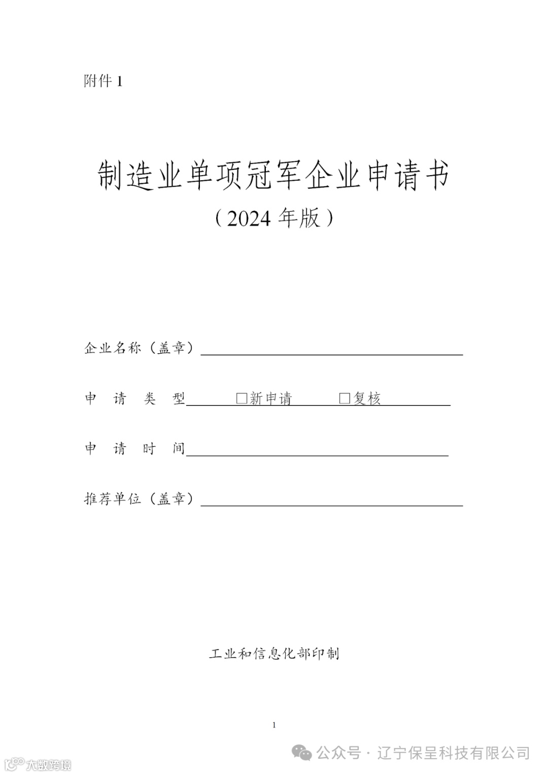 附件:1.制造业单项冠军企业申请书(2024年版)