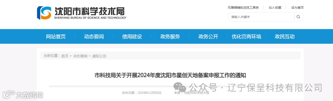保呈快讯内容:关于《市科技局关于开展2024年度沈阳市星创天地备案申报工作的通知》-内容分享