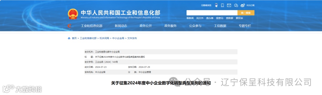 保呈快讯内容:关于《关于征集2024年度中小企业数字化转型典型案例的通知》-内容分享
