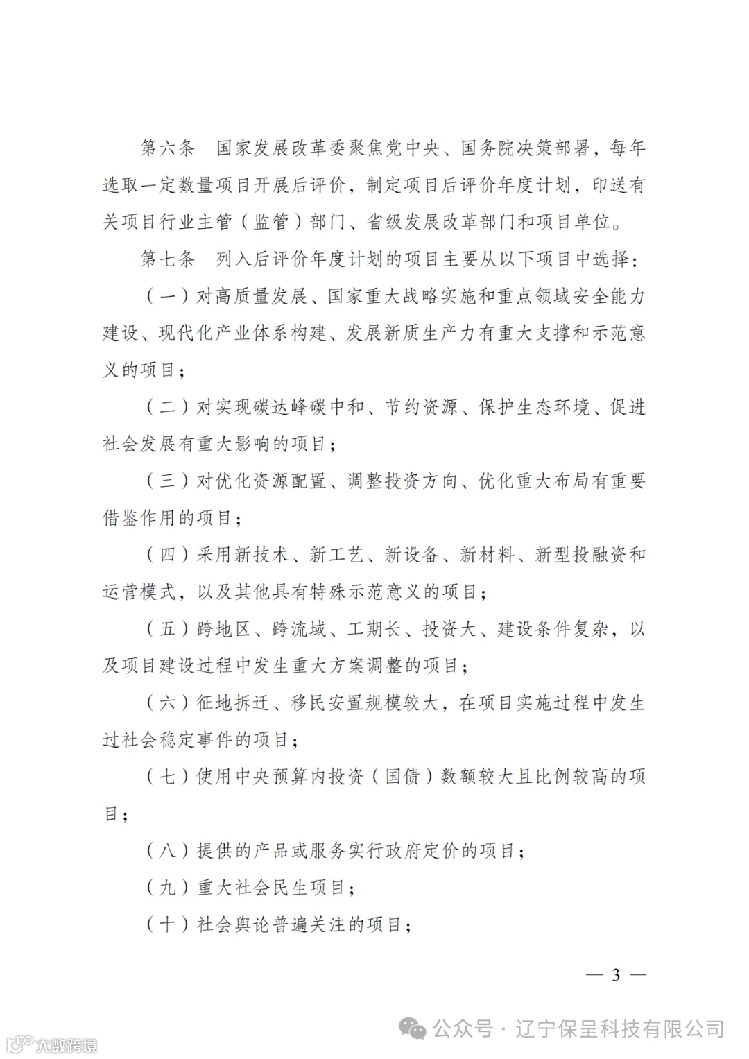 保呈快讯内容:关于《关于印发《国家发展改革委重大项目后评价管理办法》的通知(发改评督规〔2024〕1103号)》-内容分享